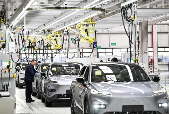 3月6日,工人在位于重庆市渝北区的长安汽车数智工厂总装车间作业。新华社记者 王全超 摄