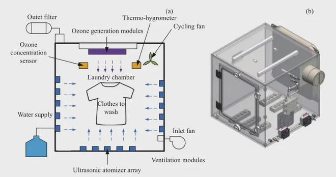 这一次根据说明来看,是我国研究的一款新的系统,这是提出的一种紧凑、无洗涤剂的装置,该装置使用雾气和臭氧在极少量的水之下,就可以清洁衣物。